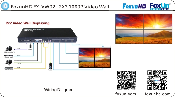 FoxunHD FX-VW02 2X2 1080P Video Wall Using Four HDTV Displays