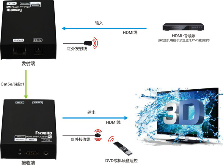1) 允许高清音视频信号与红外遥控在传输单网传输60m 以上