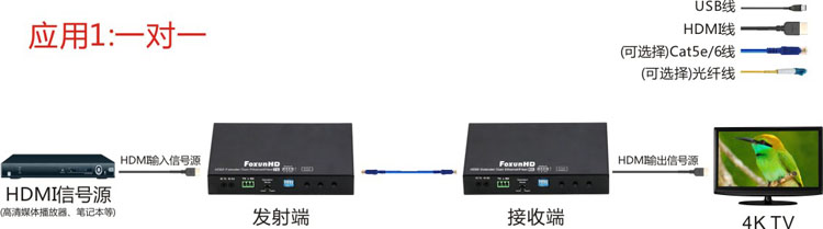 1) 用户可通过EX37连接一条单网线五/六类线传输4K视频达120m,连接一条光纤线传输4K视频达60公里(单模)