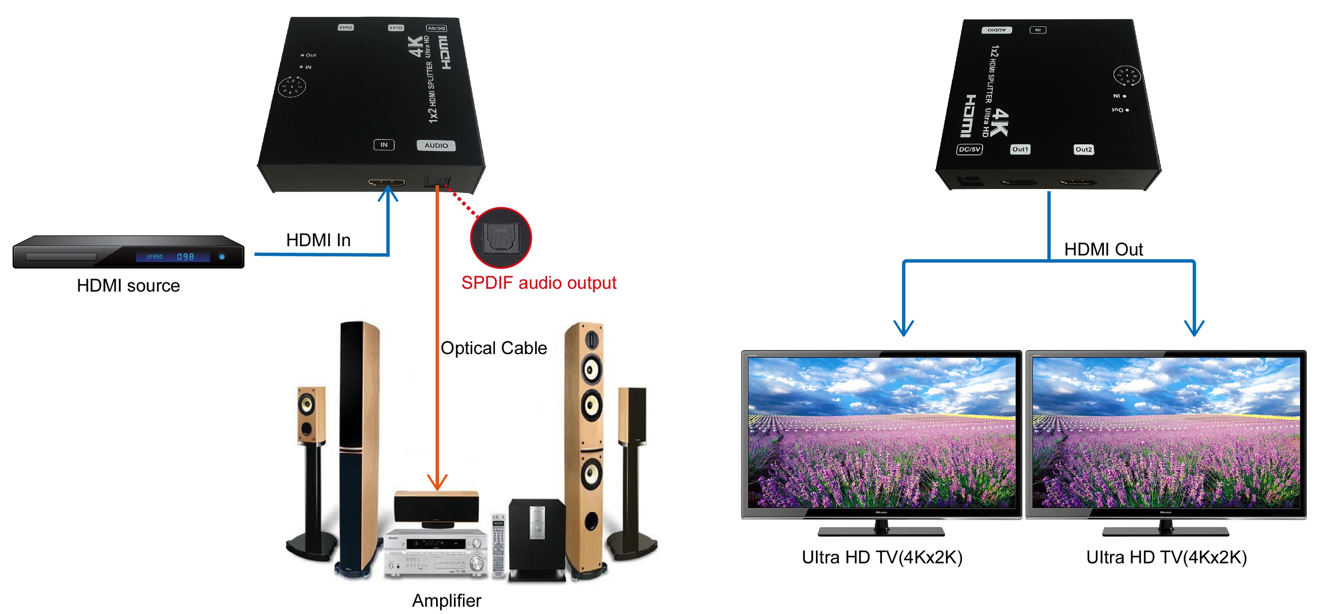 1x2 HDMI Splitter with Audio, 4Kx2k @30Hz, EDID