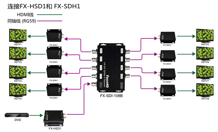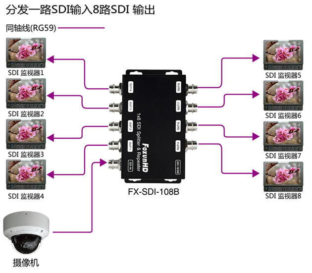 一、典型应用(分配一路SDI输入同时输出八路SDI信号)