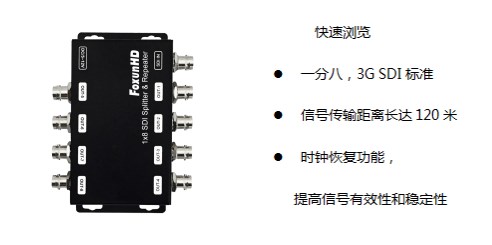 8)支持多级级联,信号源和输出端中间可置多个SDI分配器以延长传输距离